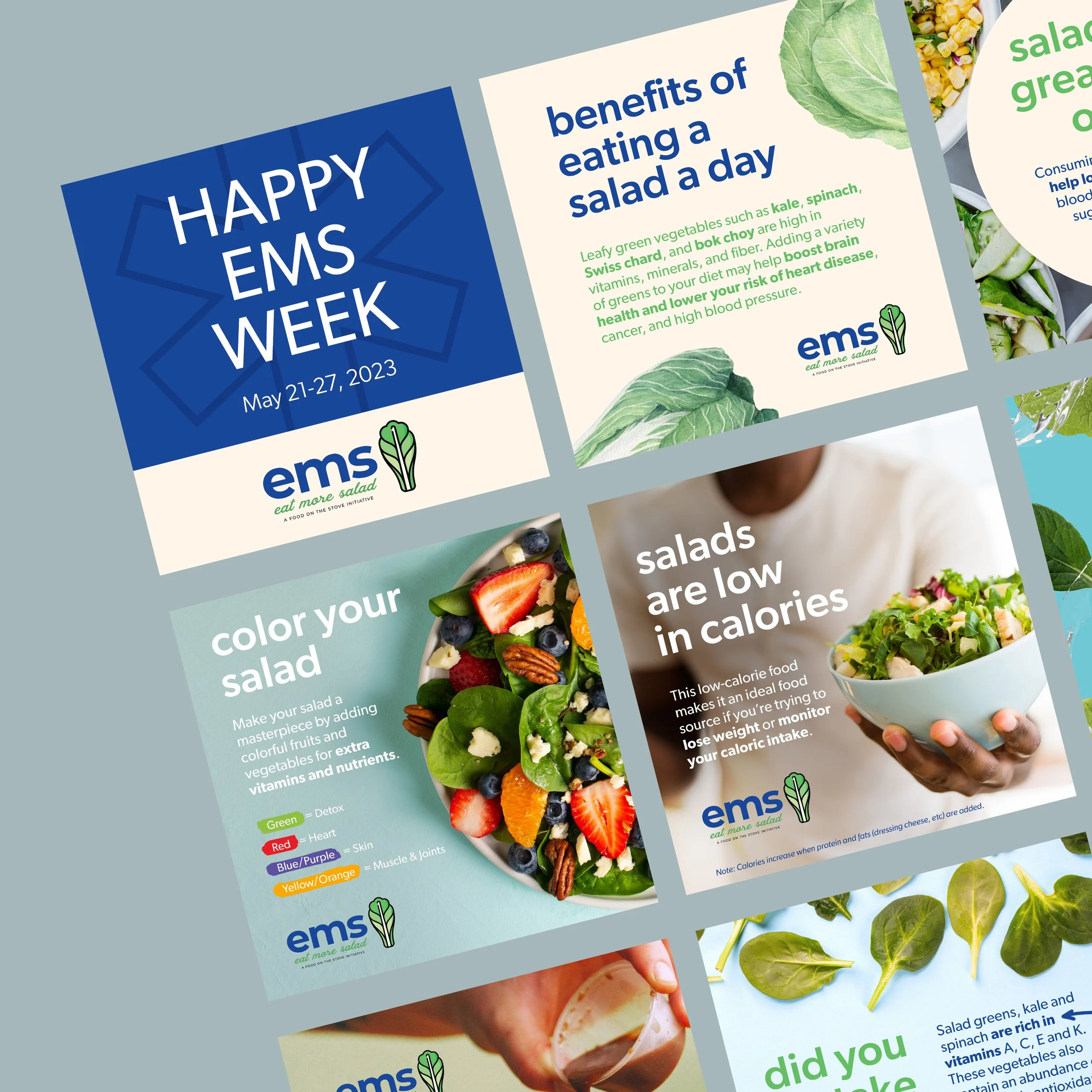 Art direction + design for social posts for Food on the Stove’s Eat More Salad initiative.